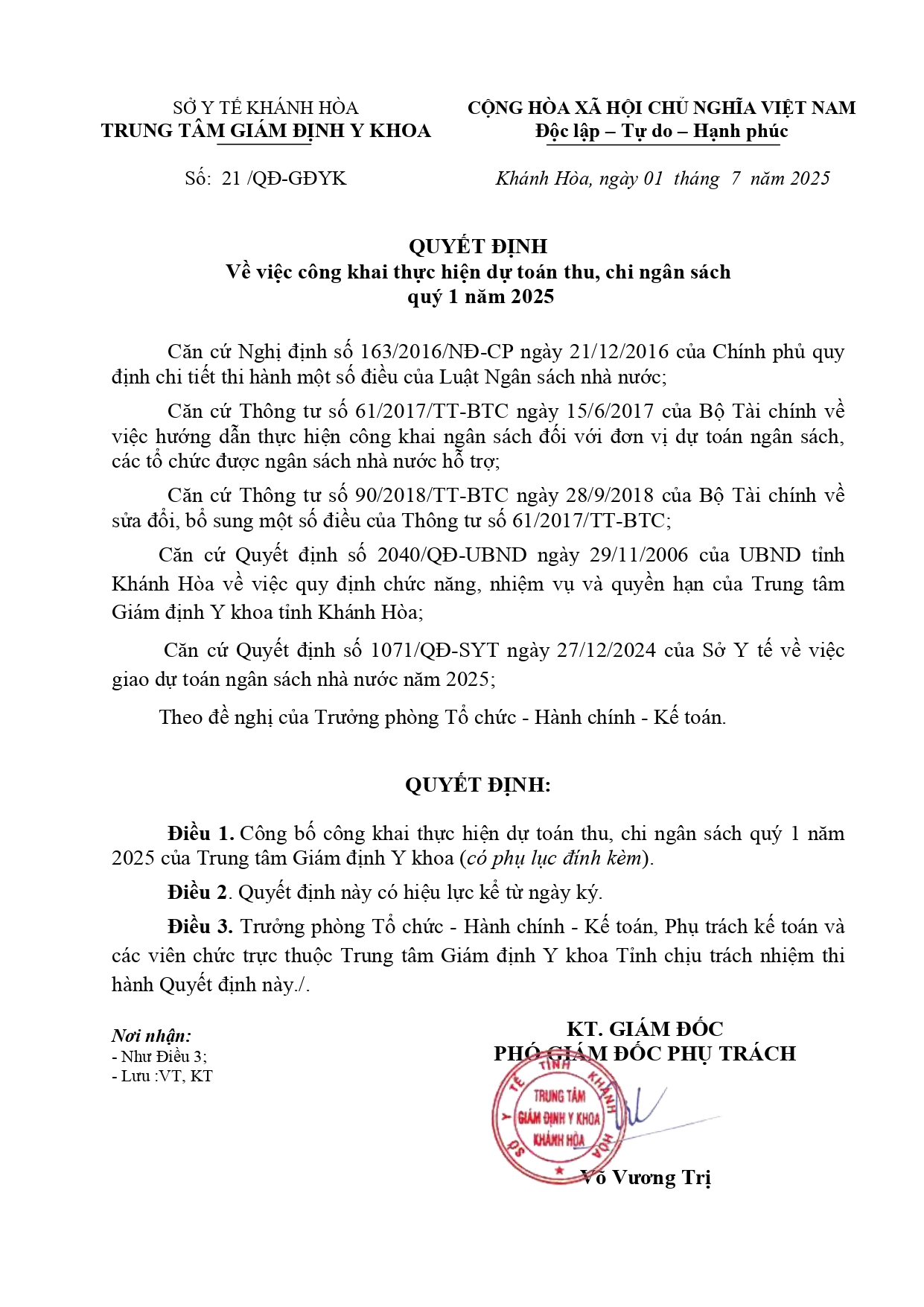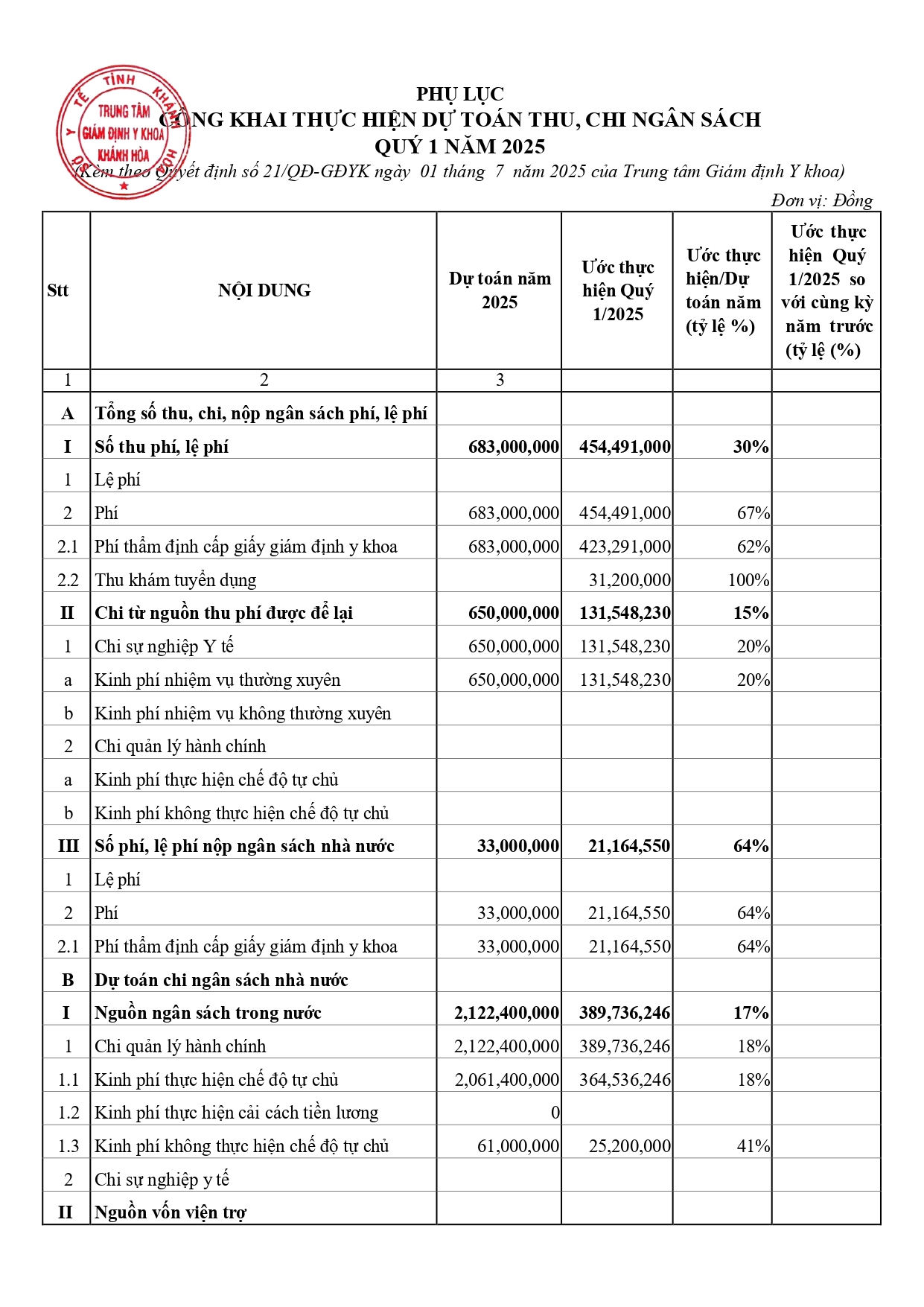Quyết định công khai ngân sách Quý I năm 2025
