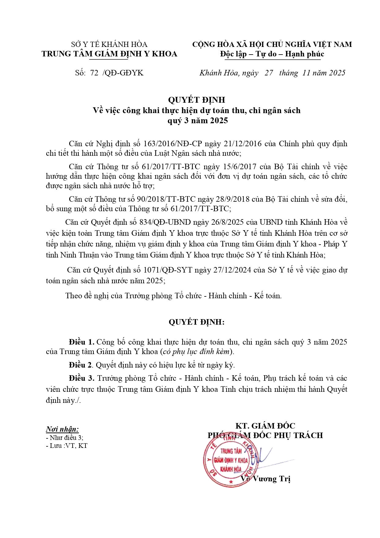 Quyết định công khai ngân sách Quý III năm 2025